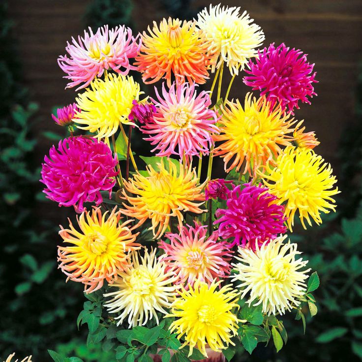 Георгина Кактус Фловеред Микс - это удивительное растение с разнообразной окраской цветков, которое поразит вас своей красотой и изяществом. Сорт flowered mix представляет собой настоящее произведение искусства природы, сочетающее в себе яркие оттенки и неповторимые формы. Высота растения может достигать до 130 см, что делает его заметным акцентом в вашем саду или огороде.