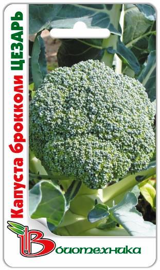 Семена капусты "Цезарь" (TCezar) – среднеспелый сорт, период от полных всходов до технической спелости которого составляет 85 дней. Растение получается среднерослое, листья приподнятые. Восковой налет незначительный. Верхушка округло-плоская, крупная, темно-зеленого цвета, среднебугристая, плотная. Поверхность мелкозернистая, кроющие листья отсутствуют,. Средняя масса головки брокколи достигает 300-400 грамм. После срезки через семь дней быстро отрастают новые головки-отпрыски. Используют урожая для приготовления различных полезных блюд.