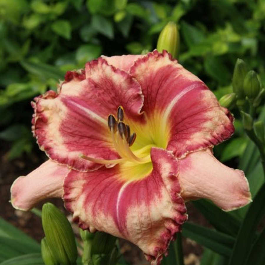 Рассада лилейника "Аутсэндинг" (Outstanding) любит солнечные или полузатененные участки. Лучшее время для посадки в средней полосе – май или август. Высота многолетника примерно 60 см. Цветы кремово-розовые с темно-красным центром и темно-красными гофрированными краями, горло желтое. Их диаметр достаточно большой - около 15 см. Период цветения длится с июня до сентября. Сорт рассады лилейника "Аутсэндинг" не любят частых поливов. Поэтому поливать нужно лишь при длительной засухе. Многолетники хорошо зимуют под снегом.