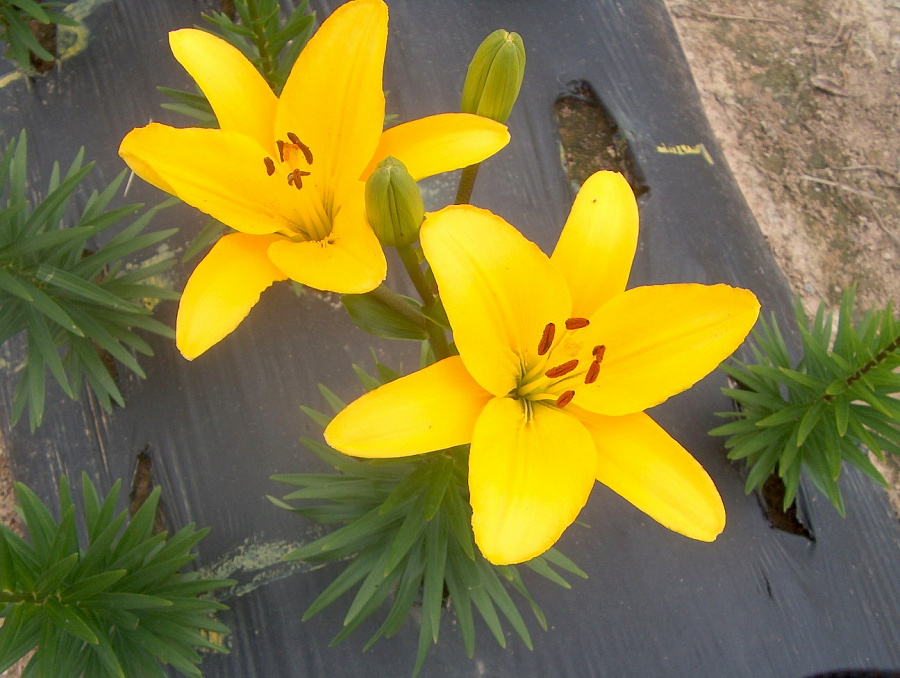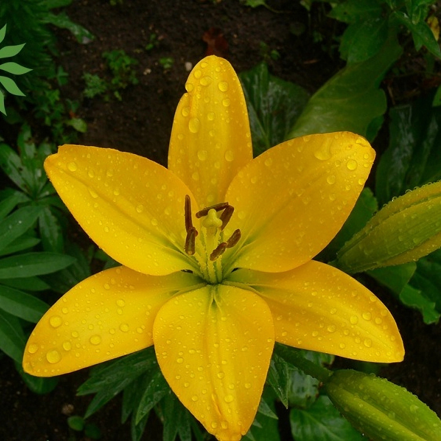 Саженцы и рассада лилии азиатской Жиронде (Lilium) способны оживить даже самый бледный цветник экзотическим канареечным окрасом своих цветов. Ненавязчивым дополнением служит зеленоватая сердцевина и крупные коричневые тычинки. Высокие стебли просто укрыты массивными цветками и бутонами. Аромат приглушенный, иногда может показаться, что эти цветы вообще не издают запаха.