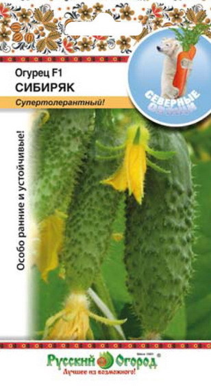 'Семена огурцов "Сибиряк F1" высевают в мае — апреле по схеме 60х60 см. Сорт очень ранний. Урожай собирают чуть больше, чем через месяц от появления всходов семян огурцов "Сибиряк F1". Растение получается очень мощное. Плоды формируются красивые, бугорчатые, с белыми шипами. Не деформируются, если не собирать сразу. Используют урожай для приготовления салатов и консервации. Сорт устойчив к распространенным болезням, к неблагоприятным условиям, перепадам температур и небольшой засухе. Но для обильного урожая нуждается в регулярном поливе.